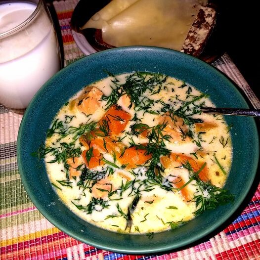 Keitä kasvikset lähes kypsiksi, lisää lohikuutiot ja mausteet, keitä hetki n. 10 min, lisää kerma, kiehauta kevyesti kalat kypsiksi, nosta kattila liedeltä, lisää oivariini ja koristele tuoreella tillillä. Raikas kylmä piimä ja ruisleipä kruunaa aterian 😋
