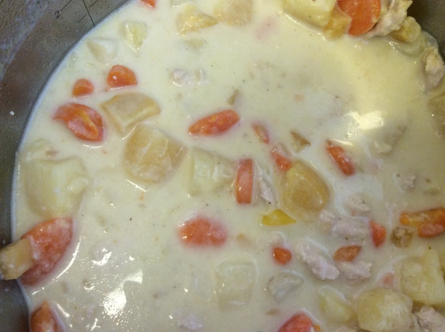 450g kanaa 1500g vettä 750g peruna- ja keittojuureksia rainbow 500g juureskuutioita 73 g koskelaskijaa 50g oltermannisulatejuustoa Voi olla pelkkää koskenlaskijaakin kunhan on sulatejuustoa