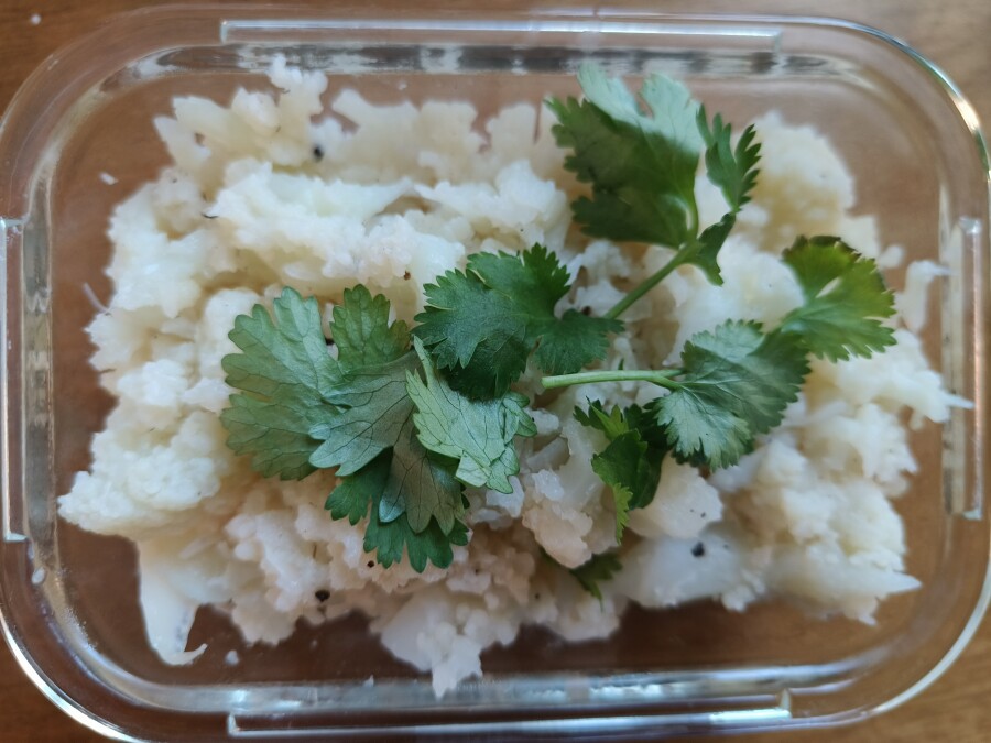 Keitä kukkakaalit, älä liian pehmeiksi. Lisää voi ja mausteet, ja hölskytä kattilaa kansi kiinni voimakkaasti. Tuoretta korianteria voi käyttää lisämausteena.