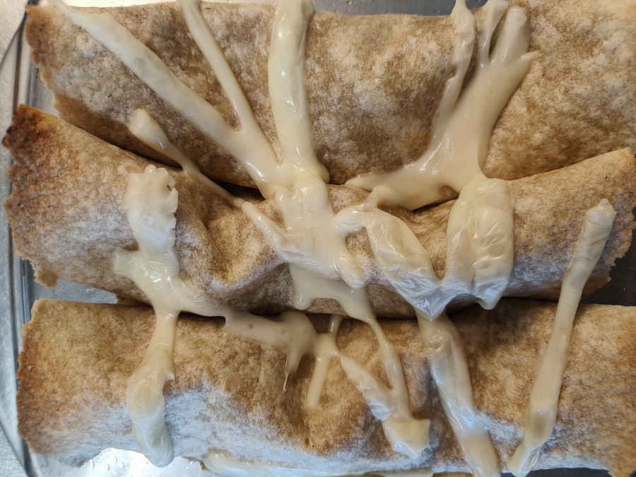 Ruskista pannulla jauheliha. Lisää muut ainekset: sipuli, paprika, (juusto), valkosipuli, tacomauste, salsakastike, tomaatit. Jaa tortillalättyjen päälle. Älä kiirehdi rullaamisessa, niin eivät halkea niin helposti. Jos haluat, vähän juustoraastetta päälle. 200 C / 5 min.