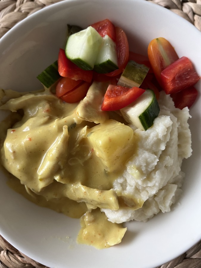 Irrota liha grillatuista koipi-reisistä. Sulata voita pannulla, lisää curry ja vehnäjauhot. Lisää vesi ja fond du chef. Lisää revitty broileri ja ruokakerma. Lisää tarvittaessa suolaa ja pippuria.