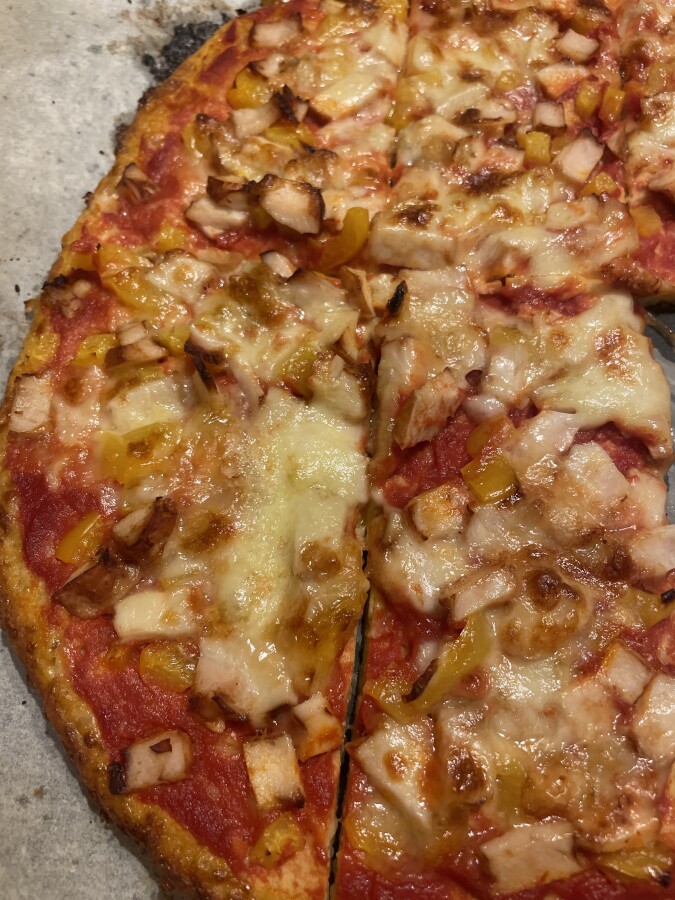 Sekoita juustoraasteet, tuorejuusto, perunakuitu ja kananmunat. Muotoile niistä pizzapohja ja lisää täytteet päälle. Paista uunissa 180 asteessa (meidän paskalla uunilla) 13min.