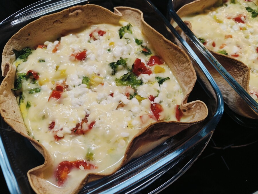 đž LĂ€tyt (2 kpl) vuokiin, muut ainekset siihen pÀÀlle, juustoraaste viimeiseksi. đž TĂ€ssĂ€ reseptissĂ€ yht. 4 kananmunaaÂ