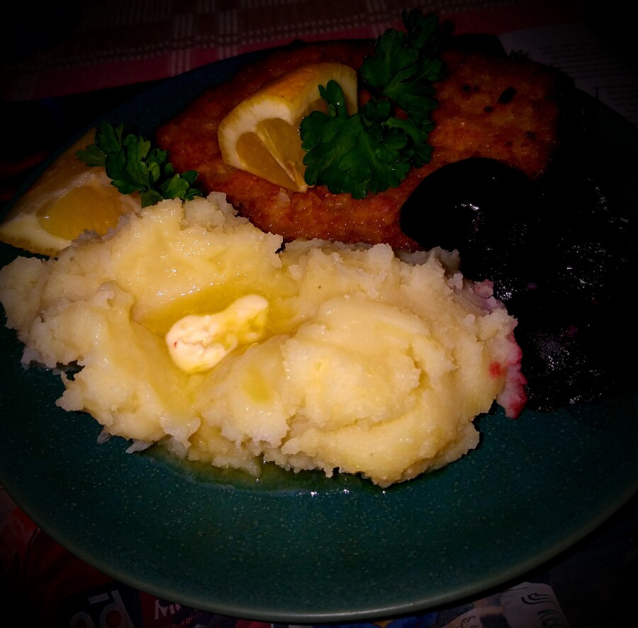 Kuvassa lisäksi rapea kalaleike, sitruuna ja punajuuria 😋