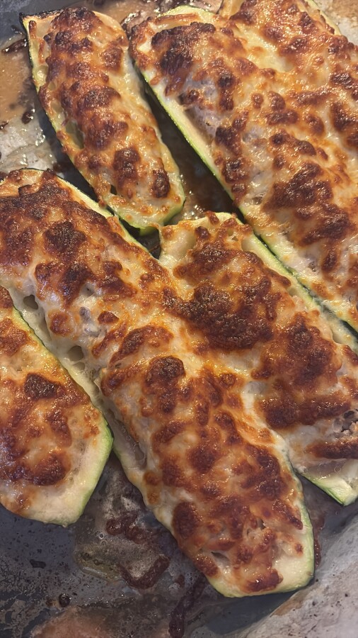 Kaavi kesäkurpitsan sisus ja suolaa kesäkurpitsat ja itketä. Kuivaa paperilla ja lisää täyte. Paista uunissa 200 asteessa 20-30 min